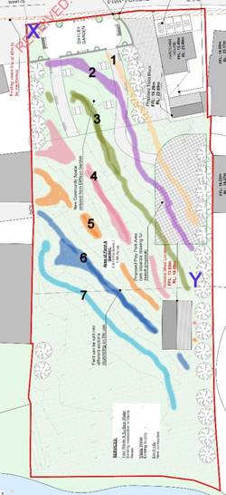 The large Substation is located between the proposed Kids Play Park and the revised proposed Shed location; approx. location of Substation indicated by blue Y in the adjoining image.
